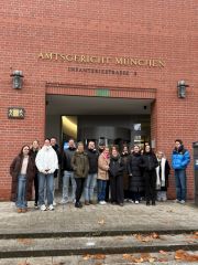 Am 27.11.2025 besuchte die Berufsschulklasse I11A22 der Immobilienkaufleute das Grundbuchamt München. Nach dem Durchlaufen der Sicherheitskontrolle wurde die Klasse in einen Saal geführt, in dem zunächst die Geschichte der Grundbücher erläutert wurde. Ein besonderes Highlight war die Möglichkeit, historische Grundbücher selbst in die Hand zu nehmen.