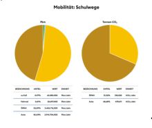 Für den Bereich Verkehr und Mobilität wurde eine schüler- und lehrerindividuelle Befragung anhand eines digitalen Fragebogens mittels Mobiltelefone durchgeführt. Ca. 1.500 Schüler*innen und ca. 60 Lehrer*innen nahmen daran teil. Ein engagiertes Lehrerteam sensibilisierte die Schüler*Innen über einen Klimabilanzfilm von Greenpeace und diskutierte im Detail den Schul-Klimafußabdruck.