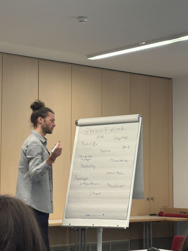 Besonders toll fanden wir alle, dass wir für einen Vormittag selbst zu Unternehmern werden durften. In Gruppen entwarfen wir Konzepte für ein eigenes Schoko-Gewerbe. Wir mussten uns einen Firmennamen überlegen, Preise berechnen und die Verkaufsmenge schätzen. Bei der anschließenden Auswertung wurde es spannend: Es ging nicht nur darum, wer den meisten Gewinn gemacht hat, sondern wir haben gemeinsam diskutiert, welche Gruppe mit ihrem Modell die meiste Zukunft hat. Die verschiedenen Arten der Vorstellung zeigten, wie viel Kreativität in unserer Klasse steckt. Runden konnten wir offen über unsere Gefühle zu diesen Fakten sprechen, was den Austausch sehr ehrlich und bodenständig machte.